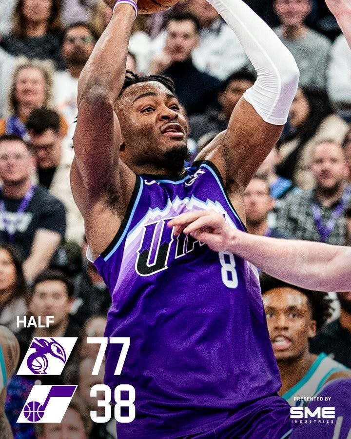 直播吧1月11日讯 爵士主场迎战黄蜂,上半场38-77逾期39分,最多曾逾期47分。