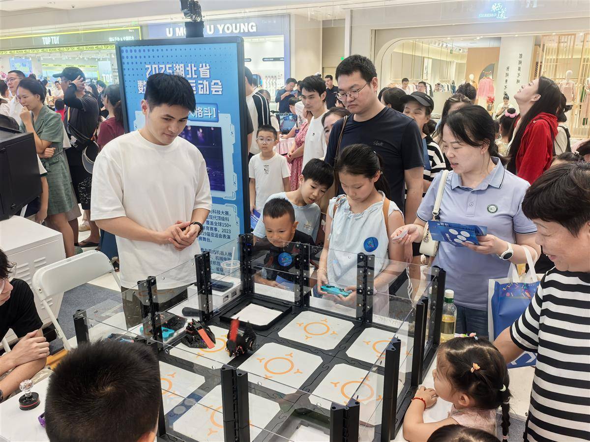 小一又友们体验机器东谈主格斗。(湖北日报全媒记者 童军鹏 摄)