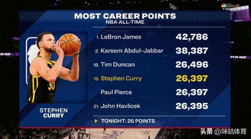 凭借本场比赛的26分,其生存总得分来到了26397分,在得分榜上成效高出了名治安20的哈弗里切克,和皮尔斯比肩历史第十九。库里距离身前的邓肯(26496分)也仅有99分的差距。