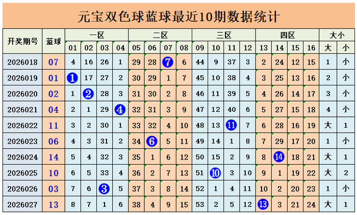 上期蓝球奖号为四区奖号13