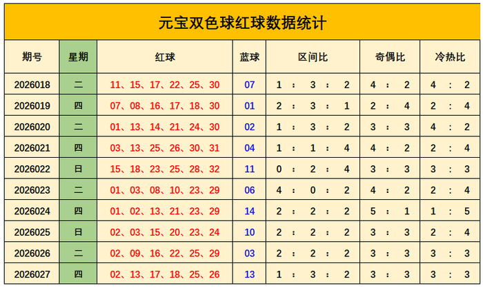 上期总结:双色球第2026027期开出奖号:红球02、13、17、18、25、26;蓝球13,其中红球三区比为1:3:2,奇偶比3:3,蓝球开出大奇数号码13。